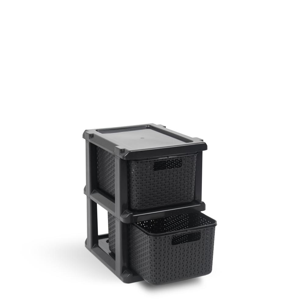 Gaveteiro Ratan Preto com 2 gavetas