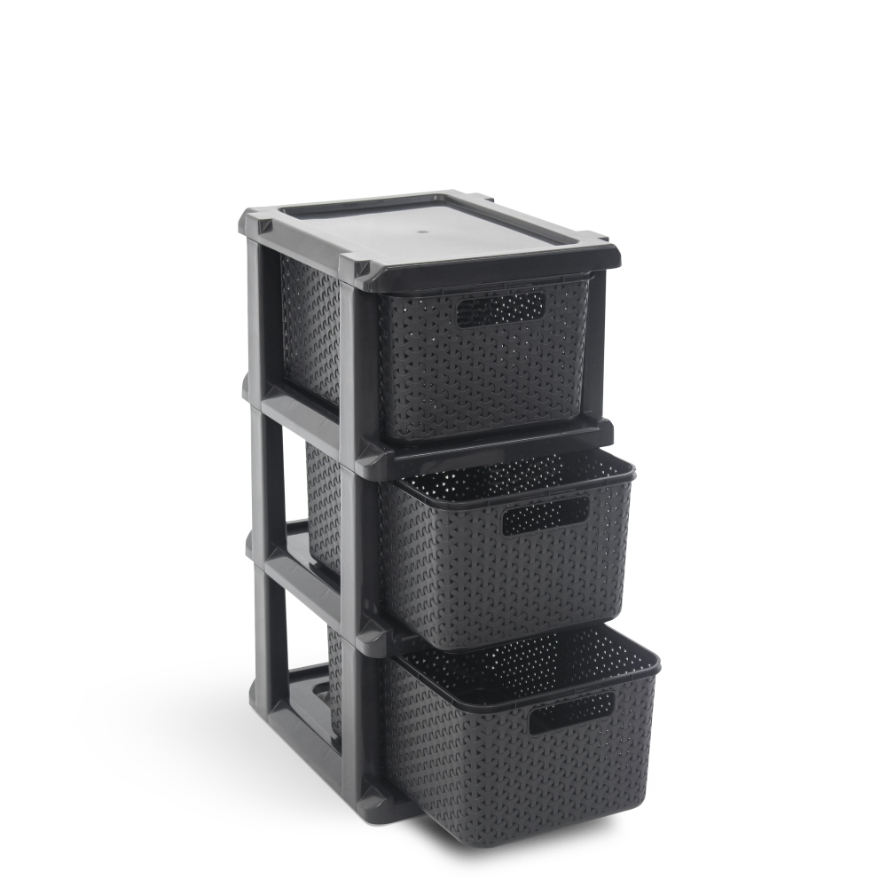 Gaveteiro Ratan Preto com 3 gavetas
